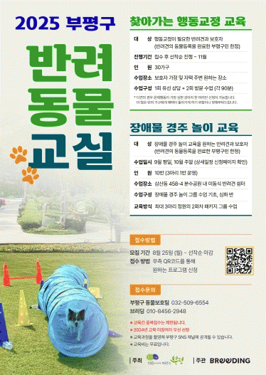 µ¿¹°µî·ÏÀÌ µÈ ¹Ý·Á°ßÀ» Ű¿ì´Â ºÎÆò±¸¹ÎÀº ´©±¸³ª µÎ ±³À°¿¡ Âü¿©ÇÒ ¼ö ÀÖÀ¸¸ç, ¿Â¶óÀÎÀ¸·Î ½Åû °¡´ÉÇÏ´Ù. ´Ü, Áö³ÇØ ±³À° ¹ÌÂü¿©ÀÚ¿¡°Ô ¿ì¼±¼øÀ§°¡ ºÎ¿©µÈ´Ù.