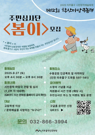 Áֹνɻç´Ü ¡®º½ÀÌ¡¯´Â ¿À´Â 9¿ù 27ÀÏ ¼öºÀ°ø¿ø ÀΰøÆøÆ÷ ¾Õ¿¡¼ °³ÃֵǴ ¹ÌÃßȦ±¸ ½Ã¹ÎâÀÛ¿¹¼úÃàÁ¦ Çл긶´ç±Ø ³î·¡¿¡¼ ¡®¸¶´ç ¿¹¼úµ¿¾Æ¸®¡¯ÀÇ Ã¢ÀÛ °ø¿¬À» °ü¶÷ÇÏ°í ½É»ç¿¡ Âü¿©ÇÏ°Ô µÈ´Ù.
