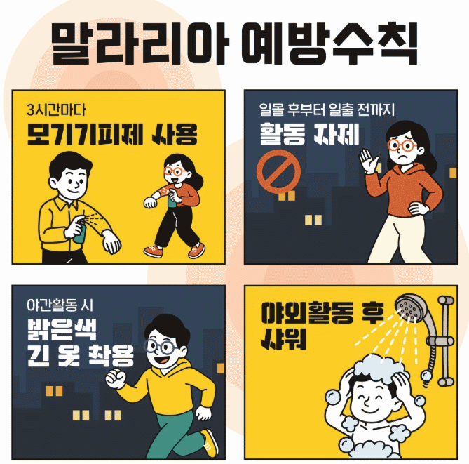 °¨¿° ¿¹¹æ ¼öÄ¢À¸·Î´Â 10¿ù±îÁö ¾ß°£(Àϸô Á÷ÈÄ ~ ÀÏÃâ Á÷Àü)¿¡´Â ¾ß¿Ü Ȱµ¿À» °¡´ÉÇÑ ÀÚÁ¦Çϰí, ¾ß°£ ¿ÜÃ⠽ÿ¡´Â ¹àÀº ±ä ¼Ò¸Å, ±ä ¹ÙÁö¸¦ Âø¿ëÇÏ´Â °ÍÀÌ ÁÁ´Ù.