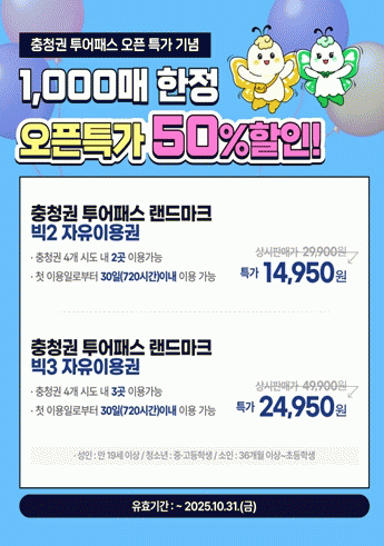 ÃæÃ»±ÇÅõ¾îÆÐ½º´Â ÃæÃ»±ÇÀÇ ÁÖ¿ä °ü±¤Áö¸¦ ÇϳªÀÇ ÆÐ½º·Î Æí¸®ÇÏ°Ô ÀÌ¿ëÇÒ ¼ö ÀÖ´Â ÅëÇÕ ÀÌ¿ë±ÇÀ¸·Î Æò»ó½Ã¿¡µµ °ü±¤Áö ÀÌ¿ë¿ä±Ý ´ëºñ ¾à 50% ÇÒÀÎµÈ °¡°ÝÀ¸·Î ÆÇ¸ÅµÇ´Â ÇÕ¸®ÀûÀÎ °ü±¤»óǰÀÌ´Ù.
