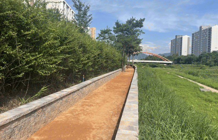 ÀåÆòõ ¸Ç¹ß°È±â ȲÅê±æÀº Æø 2m, ±æÀÌ 340m ±Ô¸ð·Î Á¶¼ºµÆÀ¸¸ç, ¾çÂÊ¿¡ ³ôÀÌ 0.6mÀÇ ºí·ÏÀ» ¼³Ä¡ÇØ À̿밴µéÀÇ ¾ÈÀüÀ» È®º¸ÇÏ°í »êÃ¥ Áß ½¯ ¼ö ÀÖ´Â ½°ÅÍ ±â´Éµµ ÇÔ²² Á¦°øÇÑ´Ù.