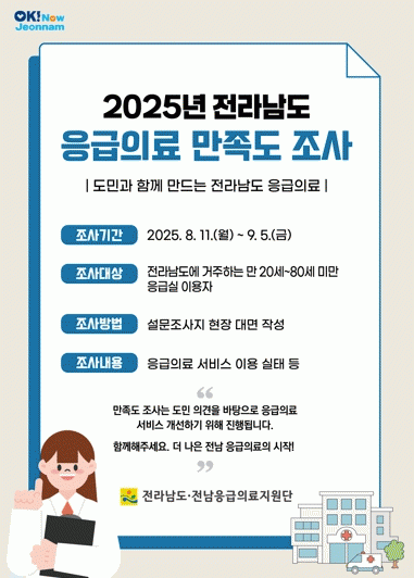 ÀÀ±ÞÀÇ·á ¸¸Á·µµ Á¶»ç Àü³²µµ Â÷¿ø¿¡¼ óÀ½ ÇÏ´Â °ÍÀ¸·Î ÀÀ±Þ½Ç ÀÌ¿ë ½ÇÅÂ¿Í ¹®Á¦Á¡ µî¿¡ ´ëÇÑ Àü¹ÝÀûÀÎ »çÇ×À» Á¶»çÇØ 2026³â Áö¿ªÀÀ±ÞÀÇ·á½ÃÇà°èȹ¿¡ ¹Ý¿µ, ÀÀ±ÞÀÇ·á ¼ºñ½º¸¦ ³ôÀ̴µ¥ Ȱ¿ëÇÒ ¿¹Á¤ÀÌ´Ù.