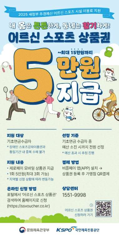 ÀÌ »óǰ±ÇÀº ¹®ÈüÀ°°ü±¤ºÎ°¡ ÃßÁøÇÏ´Â ¡®¾î¸£½Å ½ºÆ÷Ã÷ ½Ã¼³ ÀÌ¿ë·á Áö¿ø»ç¾÷¡¯ÀÇ ÀÏȯÀ¸·Î ¿Áõ±º¿¡ °ÅÁÖÇÏ´Â 65¼¼ ÀÌ»ó(1960³â ÀÌÀü Ãâ»ýÀÚ) ±âÃÊ¿¬±Ý ¼ö±ÞÀÚ¿¡°Ô 1Àδç 5¸¸ ¿ø »ó´çÀÇ ¡®Á¦·ÎÆäÀÌ¡¯ »óǰ±ÇÀ» Áö±ÞÇÏ´Â »ç¾÷ÀÌ´Ù.