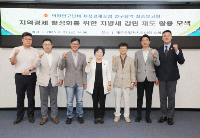 ÇÑÆí, ÀçÁ¤°æÁ¦Æ÷·³Àº Á¦ÁÖÆ¯º°ÀÚÄ¡µµÀÇȸ 9¸íÀÇ ÀÇ¿øµé·Î ±¸¼ºµÈ ÀÇ¿ø¿¬±¸ ¸ðÀÓÀ¸·Î Á¦ÁÖÆ¯º°ÀÚÄ¡µµ Áö¿ª°æÁ¦ ¹ßÀüÀ» µµ¸ðÇϱâ À§ÇØ 9¸íÀÇ ÀÇ¿øÀÌ ÇÔ²² ¿¬±¸È°µ¿À» À̾°í ÀÖ´Ù.