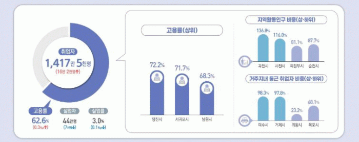 ƯÈ÷, ¿©¼º °í¿ë·üÀº Àü³â µ¿±â ´ëºñ 2.1%p Áõ°¡ÇÑ 60.7%, ³²¼º °í¿ë·üÀº 81.9%¸¦ ±â·ÏÇÏ¿© Àü±¹ ½Ã ´ÜÀ§ 1À§¸¦ À¯ÁöÇß´Ù.