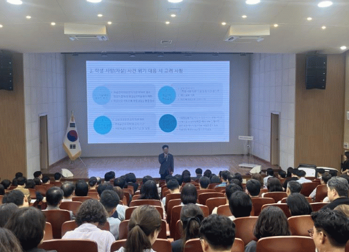 À̹ø ¿¬¼ö´Â Çб³ À§±â »óȲ ¹ß»ý ½Ã Ãʱ⠴ëÀÀ°ú ½É¸®Àû ¾ÈÁ¤È Áö¿ø ¿ª·®À» °ÈÇϰí, À§±â ÇлýÀÇ ¿¬°è ¹× Áö¿ø ü°è¿¡ ´ëÇÑ ÀÌÇØ¸¦ ³ôÀ̱â À§ÇØ ¸¶·ÃµÆ´Ù.
