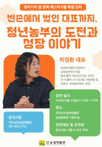 ¹®È, û³â³ó¾÷, 6Â÷»ê¾÷, ¼±Áø³ó°¡, ³ó¾÷±â¼ú µî Æø³ÐÀº ÁÖÁ¦¸¦ ´Ù·ç¸ç, ½ÒÀ» ¸Å°³·Î »î°ú ¹®È, »ê¾÷ÀÇ º¯È¿Í Áö¼Ó °¡´É¼ºÀ» ޱ¸ÇÑ´Ù.