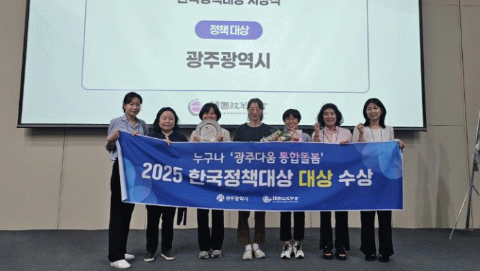±¤ÁÖ±¤¿ª½Ã´Â 25ÀÏ ºÎ»êÇ× ±¹Á¦Àü½ÃÄÁº¥¼Ç¼¾ÅÍ¿¡¼ ¿¸° ¡®2025 Çѱ¹Á¤Ã¥´ë»ó ½Ã»ó½Ä¡¯¿¡¼ ±¤ÁÖ´Ù¿ò ÅëÇÕµ¹º½ÀÌ ¿µ¿¹ÀÇ 1µî»óÀÎ Á¤Ã¥´ë»óÀ» ¼ö»óÇß´Ù°í ¹àÇû´Ù.