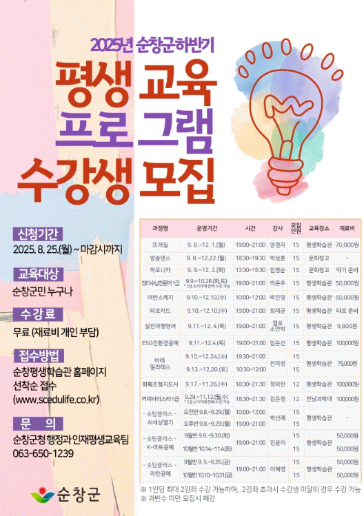 À̹ø Æò»ý±³À° ÇÁ·Î±×·¥Àº ±º¹ÎµéÀÇ ´Ù¾çÇÑ ¿ä±¸¸¦ ¹Ý¿µÇØ ¡ã¶ß°³Áú ¡ã¹æ¼Û´í½º ¡ãÇϸð´ÏÄ« ¡ã¾î¹Ý½ºÄÉÄ¡ ¡ãŸ·ÎÄ«µå ¡ã¹Ù·¹ÇʶóÅ×½º ¡ãESGģȯ°æ°ø¿¹ ¡ãK-¾ÆÆ®°ø¿¹ ¡ã¶óź°ø¿¹ ¡ãÁ¤¸®¼ö³³Àü¹®°¡ 1±Þ ¡ãÈÈÑÁ¶ÇüÁöµµ»ç ¡ãÄ¿Çǹٸ®½ºÅ¸ 1±Þ °úÁ¤ ¡ãAI¼¼»ó¿±â ¡ã½ÇÀü¿©Ç࿵¾î±îÁö ÃÑ 14°³ °ú¸ñÀ¸·Î ±¸¼ºµÆ´Ù.
