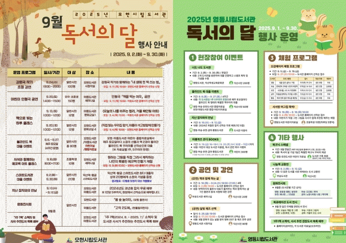 ¸¶µ¿µµ¼°üÀº 9¿ù 20ÀÏ ¾î¸°À̸¦ À§ÇÑ ÀÎÇü±Ø 'Ã¥À» ¸Ô´Â ¿©¿ì' °ø¿¬À» °³ÃÖÇϰí, ¿µµîµµ¼°üÀº 9¿ù 26ÀÏ ÀçÁî °ø¿¬ '´Þºû ÀçÁî »êÃ¥'À» ÅëÇØ °¡À»¹ãÀÇ Á¤Ã븦 ¼±»çÇÑ´Ù.