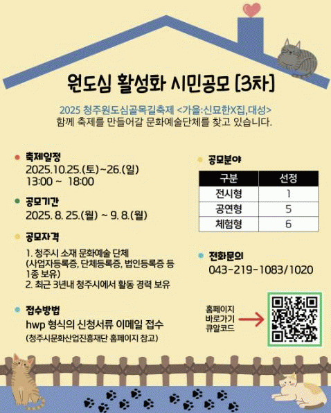ÀÀ¸ð ÀÚ°ÝÀº ÃÖ±Ù 3³â°£(2022~2024³â) ûÁÖ¿¡¼ Ȱµ¿ÇÑ °æ·Â°ú ÇÔ²² ûÁֽà ¼ÒÀç »ç¾÷ÀÚµî·ÏÁõ, °íÀ¯¹øÈ£Áõ µî ´Üü Áõºù¼·ù¸¦ º¸À¯Çϰí ÀÖ´Â ¹®È¿¹¼ú´Üü¸é ´©±¸³ª ÀÀ¸ðÇÒ ¼ö ÀÖ´Ù. °³ÀÎ ÀÚ°ÝÀ¸·Î´Â Áö¿øÇÒ ¼ö ¾ø´Ù.