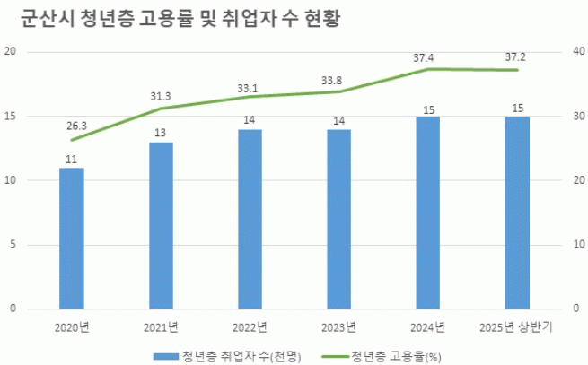 ±º»ê½Ã´Â 2018³â °í¿ëÀ§±âÁö¿ªÀ¸·Î ÁöÁ¤µÆÀ¸³ª ÀÌÈÄ¿¡µµ û³âÃþ °í¿ë·üÀº Áö¼ÓÀûÀÎ »ó½Â¼¼¸¦ º¸¿©ÁÖ°í ÀÖ´Ù.