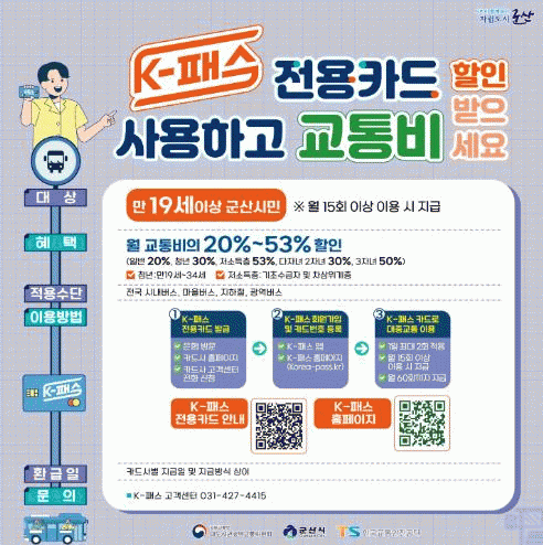 À̼®±â ±³ÅëÇàÁ¤°úÀåÀº ¡°K-ÆÐ½º Á¦µµ´Â ƯÈ÷ °æÁ¦Àû ¾àÀÚÀΠû³âÃþ°ú Àú¼ÒµæÃþ¿¡°Ô ½ÇÁúÀûÀÎ ±³Åëºñ Àý°¨ È¿°ú¸¦ ÁÖ°í ÀÖÀ¸¸ç, ÁýÁß È«º¸ ÀÌÈÄ ½ÇÀÌ¿ëÀÚ°¡ Å« ÆøÀ¸·Î »ó½ÂÇß´Ù.¡±¶ó¸ç ¡°±º»ê½Ã´Â ¿À´Â 9¿ù ½Ã³»¹ö½º ¿ä±Ý 100¿ø ÀÎ»ó¿¡ ¸ÂÃç ¸¹Àº ½Ã¹ÎµéÀÌ È¯±Þ ÇýÅÃÀ» ¹ÞÀ» ¼ö ÀÖµµ·Ï Àû±ØÀûÀ¸·Î È«º¸ÇϰڴÙ.¡±¶ó°í ¹àÇû´Ù.