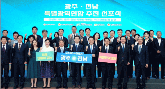 ±è¿µ·Ï Àü¶ó³²µµÁö»ç´Â ¡°Àü³²°ú ±¤ÁÖ´Â ÇϳªÀÇ »Ñ¸®¿¡¼ ½ÃÀÛµÈ ºÒ°¡ºÐÀÇ °ü°è·Î, ±¤ÁÖ¡¤Àü³² Ưº°Áö¹æÀÚÄ¡´Üü¸¦ ÅëÇØ ÇϳªÀÇ °øµ¿Ã¼·Î Àçµµ¾àÇØ ³ª¾Æ°¡°Ú´Ù¡±¸ç ¡°È£³²ÀÌ ´ëÇѹα¹ÀÇ »õ·Î¿î Áß½ÉÃàÀÌ µÅ 5±Ø3Ư ±¹°¡±ÕÇü¼ºÀåÀ» À̲ø°í ±¹°¡ ¼ºÀåÀÇ ÁøÂ¥ ÁÖü°¡ µÇ´Â ¹Ì·¡¸¦ ¿°Ú´Ù¡±°í ¹àÇû´Ù.