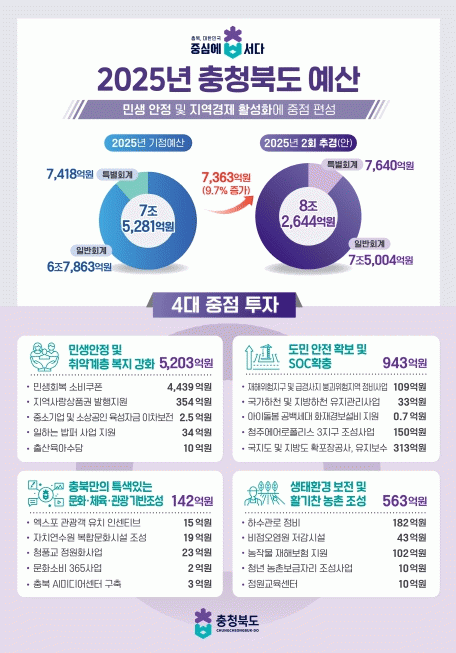 ÃæÃ»ºÏµµ´Â ¾î·Á¿î ÀçÁ¤ ¿©°Ç¿¡µµ ºÒ±¸ÇÏ°í µµ¹Î »ýȰ ¾ÈÁ¤°ú ¹Î»ý ȸº¹, Áö¿ª°æÁ¦ Ȱ¼ºÈ¿¡ ÁßÁ¡À» µÎ°í ÇϹݱ⠵µÁ¤ ¿î¿µ¿¡ ÇÊ¿äÇÑ ÇÙ½É »ç¾÷ À§ÁÖ·Î Æí¼ºÇß°í, °¡¿ëÀç¿øÀº ¼¼Ã⿹»ê È¿À²È, ¼ø¼¼°èÀ׿©±Ý µîÀ» ÃÖ´ëÇÑ È°¿ëÇß´Ù.