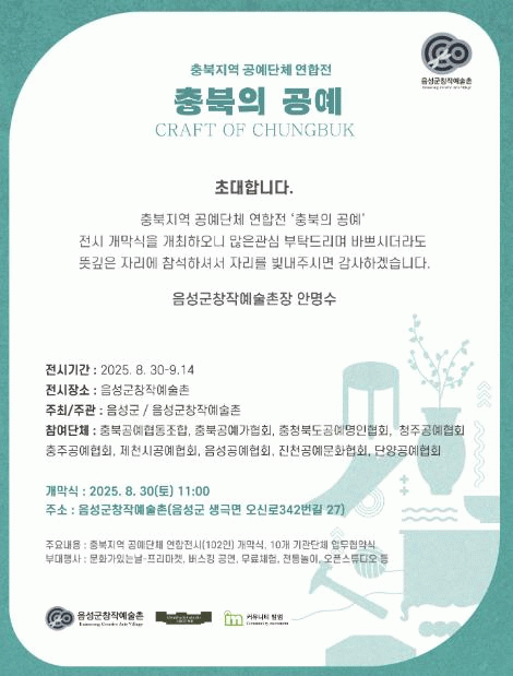 Àü½Ã´Â ¿À´Â 8¿ù 30ÀϺÎÅÍ 9¿ù 14ÀϱîÁö À½¼º±º âÀÛ¿¹¼úÃÌ¿¡¼ ¿¸®¸ç, ÀÚ¿¬°ú ¿¹¼úÀÌ Á¶È¸¦ ÀÌ·ç´Â °ø°£ ¼Ó¿¡¼ °ø¿¹ ÀÛ°¡µéÀÇ Á¤¼º°ú ¾Æ¸§´Ù¿òÀÌ ´ã±ä ÀÛǰÀ» °æÇèÇÒ ¼ö ÀÖ´Ù.