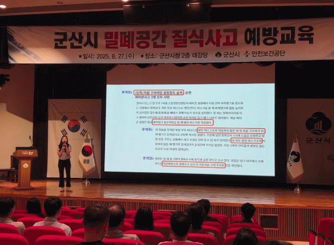 ¾ÈÀüº¸°Ç°ø´Ü Àü¹® °»ç¸¦ ÃʺùÇØ ÁøÇàµÈ ±³À°¿¡¼´Â ¡ã¹ÐÆó°ø°£ÀÇ Á¤ÀÇ¿Í ÁÖ¿ä À§Çè ¿äÀÎ ¡ãÁú½Ä»ç°í ¹ß»ý »ç·Ê ¹× ¿øÀÎ ºÐ¼® ¡ã»ê¼Ò ¹× À¯Çذ¡½º ÃøÁ¤ ÀýÂ÷ ¡ã°³Àκ¸È£±¸ Âø¿ë ¿ä·É ¡ãºñ»ó »óȲ ´ëÀÀ ÀýÂ÷ µî ½Ç¹« Áß½ÉÀÇ ³»¿ëÀÌ ´Ù·ïÁ³´Ù.