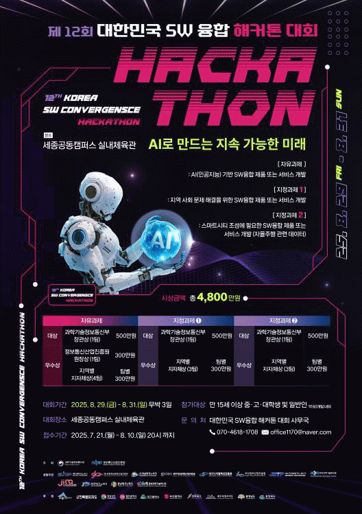Âü°¡ÀÚµéÀº ´ëȸ ±â°£ 42.195½Ã°£ µ¿¾È 3°¡Áö °úÁ¦(¡âÀÚÀ¯°úÁ¦_AI ±â¹Ý SW À¶ÇÕ Á¦Ç°¡¤¼ºñ½º °³¹ß, ¡âÁöÁ¤°úÁ¦¨ç_Áö¿ª »çȸ ¹®Á¦ ÇØ°áÀ» À§ÇÑ SW À¶ÇÕ Á¦Ç° ¶Ç´Â ¼ºñ½º °³¹ß, ¡âÁöÁ¤°úÁ¦¨è_½º¸¶Æ®½ÃƼ Á¶¼º¿¡ ÇÊ¿äÇÑ ÀÚÀ²ÁÖÇà µ¥ÀÌÅÍ ±â¹Ý SW À¶ÇÕ Á¦Ç° ¶Ç´Â ¼ºñ½º °³¹ß)Áß¿¡¼ ÇѰ¡Áö¸¦ ¼±ÅÃÇÏ¿© °úÁ¦¿¡ µµÀüÇÑ´Ù.