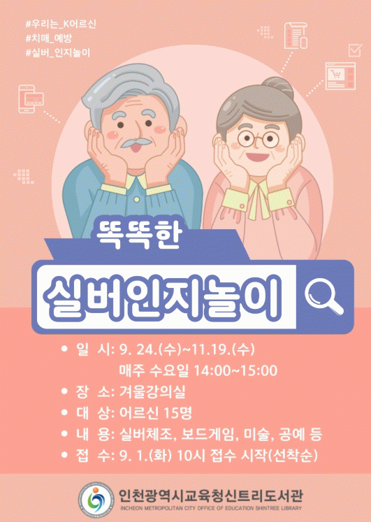 À̹ø °Á´ ½ÅÆ®¸®µµ¼°ü °Ü¿ï°Àǽǿ¡¼ ÁøÇàÇϸç, °ü³» ¾î¸£½Å 15¸íÀ» ´ë»óÀ¸·Î ½Ç¹öüÁ¶, º¸µå°ÔÀÓ, ¹Ì¼ú, °ø¿¹ µî ´Ù¾çÇÑ È°µ¿À¸·Î ½Åü¡¤Á¤½Å °Ç°À» ÁõÁøÇÏ°í »çȸÀû ±³·ù¸¦ È®´ëÇÒ ¼ö ÀÖµµ·Ï ±¸¼ºÇß´Ù.
