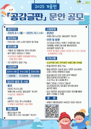 °ø¸ð ³»¿ëÀº °Ü¿ï°ú ¾î¿ï¸®¸ç, Èñ¸Á°ú °ø°¨À» ³ª´ ¼ö ÀÖ´Â ¡®30ÀÚ À̳»ÀÇ Ã¢ÀÛ ±Û±Í¡¯´Ù. ÀÎõ ½Ã¹ÎÀ̰ųª ÀÎõ ¼ÒÀç Á÷ÀåÀÎ, ÇлýÀ̶ó¸é ´©±¸³ª Âü¿©ÇÒ ¼ö ÀÖ´Ù.