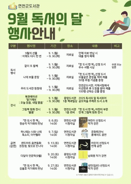 µµ¼°ü °ü°èÀÚ´Â ¡°9¿ù µ¶¼ÀÇ ´ÞÀ» ¸Â¾Æ ¸ðµç ¼¼´ë°¡ Ã¥°ú ÇÔ²² ´õ¿í dz¿ä·Î¿î °¡À»À» º¸³¾ ¼ö ÀÖµµ·Ï ´Ùä·Î¿î ÇÁ·Î±×·¥À» ÁغñÇß´Ù¡±¸ç, ¡°±ÇÁ¤»ý ÀÛ°¡´ÔÀÇ µû¶æÇÑ µ¿ÈºÎÅÍ ½É±ÝÀ» ¿ï¸®´Â ¾ÆÄ«Æç¶ó, ±×¸®°í µ¶¼·ÂÀ» Ű¿ï ¼ö ÀÖ´Â °¿¬±îÁö, À̹ø Çà»ç¸¦ ÅëÇØ Ã¥ÀÌ ¼±»çÇÏ´Â ¹«ÇÑÇÑ Áñ°Å¿òÀ» °æÇèÇÏ½Ã±æ ¹Ù¶õ´Ù¡±°í ÀüÇß´Ù.