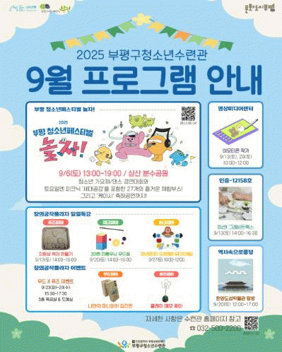 ÇÑÆí, ¼ö·Ã°üÀº ¿À´Â 6ÀÏ »ï»êµ¿ ºÐ¼ö°ø¿ø¿¡¼ ¡®ºÎÆò û¼Ò³âÆä½ºÆ¼¹ú ³îÀÚ!¡¯¸¦ °³ÃÖÇϸç, ¿À´Â 13Àϰú 20ÀÏ 2ȸ¿¡ °ÉÃÄ ¡®À̸ðƼÄÜ ÀÛ°¡¡¯ ÇÁ·Î±×·¥À» ¿î¿µÇÑ´Ù.
