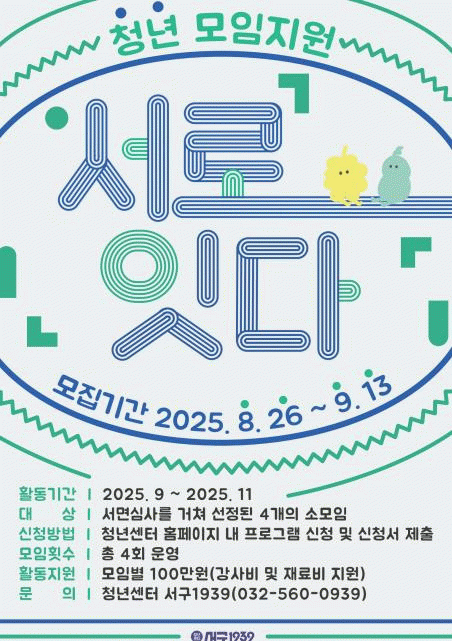 À̹ø ÇÁ·Î±×·¥Àº û³âµéÀÌ ½º½º·Î °ü½É ÀÖ´Â ÁÖÁ¦¿Í Ȱµ¿À» ±â¹ÝÀ¸·Î ¼Ò¸ðÀÓÀ» ±¸¼ºÇϵµ·Ï Áö¿øÇÏ´Â »ç¾÷À¸·Î, Ãë¾÷¡¤¹®È¿¹¼ú¡¤»çȸÂü¿© µî ´Ù¾çÇÑ ºÐ¾ß¿¡¼ ¼Ò¸ðÀÓ ÁÖÁ¦ ¹ß±¼À» ¸ñÇ¥·Î ÇÑ´Ù.