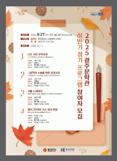 ¡®³ªµµ ½ÃÀΠâÀÛ±³½Ç¡¯Àº 9¿ù 16ÀϺÎÅÍ ¸ÅÁÖ È¿äÀÏ ¿ÀÀü 10½Ã ¿î¿µµÇ¸ç, ½Ã ¾²±â¸¦ ÅëÇØ Àڱ⠼ºÂû°ú âÀÛÀÇ Áñ°Å¿òÀ» ã´Â °úÁ¤À¸·Î ÁøÇàµÈ´Ù. ¡®±×¸²Ã¥°ú ¼ÒÅëÀ» À§ÇÑ °¨Á¤ÄÚĪ¡¯Àº 9¿ù 16ÀϺÎÅÍ ¸ÅÁÖ È¿äÀÏ ¿ÀÈÄ 3½Ã ¿î¿µµÇ¸ç, ±×¸²Ã¥À» ÀÐ°í °¨Á¤À» °øÀ¯ÇÏ¸ç ½É¸®Àû Ä¡À¯¸¦ µ½´Â´Ù.