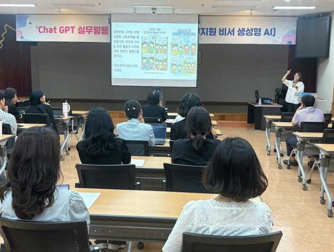 ±³À°Àº ±¤ÁÖµ¿¸íÁßÇб³ ¹ÚÇýÀÎ ±³»ç°¡ ¡®½º¸¶Æ®¾÷¹«Áö¿ø ºñ¼, »ý¼ºÇü AI¡¯¸¦ ÁÖÁ¦·Î °ÀÇ¿Í ½Ç½ÀÀ» º´ÇàÇÏ´Â ¹æ½ÄÀ¸·Î ÁøÇàµÆ´Ù.