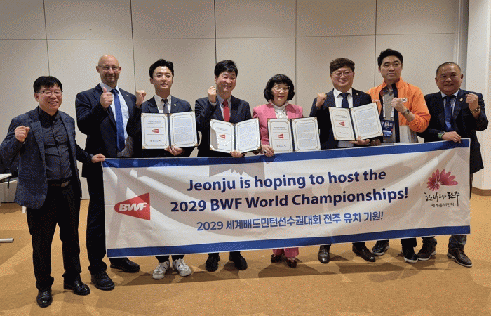 À̿ܿ¡µµ ÀüÁֽà ´ëÇ¥´ÜÀº ±èµ¿¹® ´ëÇѹèµå¹ÎÅÏÇùȸÀå°ú °æ±â ÇöÀåÀ» ã¾Æ Äí´× ÆÄŸ¸¶ ¸®½º¿ÍµåÆ®¶óÄð(Kuningan Patama R. Lewatrakul) ¼¼°è¹èµå¹ÎÅÏ¿¬¸Í(BWF) ȸÀå ¹× ÁÖ¿ä °ü°èÀÚ¸¦ Á¢°ßÇϰí, 2029³â ¼¼°è´ëȸÀÇ ÀüÁÖ À¯Ä¡¸¦ Èñ¸ÁÇÏ´Â Á¦¾È¼¸¦ Àü´ÞÇϱ⵵ Çß´Ù.