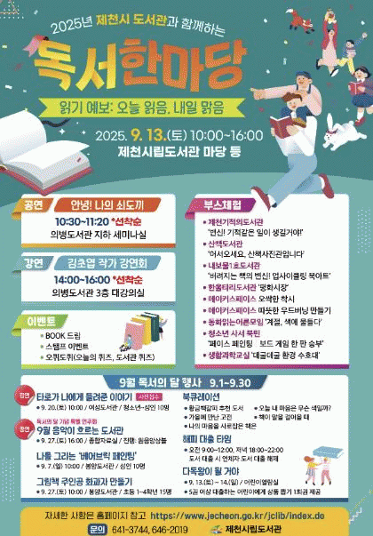 ¿ÃÇØ µ¶¼ÀÇ ´Þ Çà»ç´Â¡®Àб⠿¹º¸: ¿À´Ã ÀÐÀ½, ³»ÀÏ ¸¼À½¡¯À» ÁÖÁ¦·Î, 9¿ù ÇÑ ´Þ°£ ÁøÇàµÈ´Ù. ¾î¸°À̺ÎÅÍ ¼ºÀαîÁö ´Ù¾çÇÑ °èÃþÀÌ ÇÔ²² Áñ±æ ¼ö ÀÖµµ·Ï ±¸¼ºµÈ À̹ø ÇÁ·Î±×·¥Àº µ¶¼¿Í ¿¹¼ú, üÇèÀ» °áÇÕÇÑ Âü¿©Çü Çà»ç·Î ¸¶·ÃµÆ´Ù.
