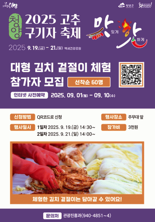 ȸÂ÷º° 100¸íÀÌ Âü¿©ÇÒ ¼ö ÀÖÀ¸¸ç, û¾ç»ê °íÃå°¡·ç·Î ¸¸µç ¾ç³ä°ú ½Å¼±ÇÑ ¹èÃß°¡ Á¦°øµÇ¾î ÇöÀå¿¡¼ Á÷Á¢ ±èÄ¡¸¦ ¹ö¹«·Á ´ã¾Æ°¥ ¼ö ÀÖ´Ù.