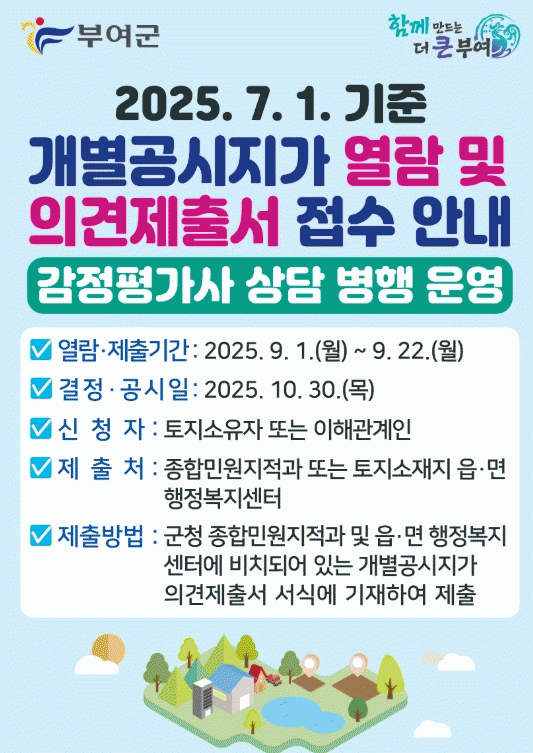 ±º¿¡ µû¸£¸é À̹ø °³º°°ø½ÃÁö°¡ ¿¶÷Àº ¿ÃÇØ »ó¹Ý±â Áß ºÐÇÒ, ÇÕº´ µî ÅäÁöÀ̵¿ÀÌ ¹ß»ýÇÑ 3,137ÇÊÁö°¡ ´ë»óÀ̸ç, ¿¶÷ ÈÄ ÀǰßÀÌ ÀÖ´Â ÅäÁö¼ÒÀ¯ÀÚ ¹× ÀÌÇØ °ü°èÀÎÀº °³º°°ø½ÃÁö°¡ Àǰ߼¸¦ ÀÛ¼ºÇØ ±ºÃ» Á¾ÇչοøÁöÀû°ú ÅäÁö°ü¸®ÆÀ ¶Ç´Â À¾¸é ÇàÁ¤º¹Áö¼¾Å͸¦ ¹æ¹®ÇÏ¿© ¼¸éÀ¸·Î Á¦ÃâÇϰųª ¿ìÆí, ÆÑ½º·Î Á¦ÃâÇÒ ¼ö ÀÖ´Ù.