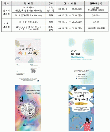 »ï°Å¸® °¶·¯¸®¿¡¼´Â ¡ã9¿ù 3ÀÏ¿¡¼ 7ÀÏ, 2025 Á¦8ȸ ´ëÇѹα¹ »ýȰ¹Ì¼ú Æä½ºÆ¼¹ú ¡ã9¿ù 10ÀÏ¿¡¼ 14ÀÏ, 2025 ºû´Ù»öȸ The Harmory¸¦ ¿¬´Ù.