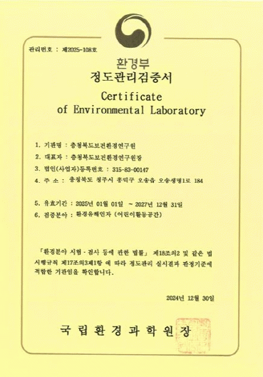 ÃæºÏº¸°Çȯ°æ¿¬±¸¿ø ¹ÎÀ±Èñ Æó±â¹°ºÐ¼®°úÀåÀº ¡°À̹ø ¼÷·Ãµµ ½ÃÇè Àü Ç׸ñ ÀûÇÕ ÆÇÁ¤À¸·Î ¿ì¸® ¿¬±¸¿øÀÇ ºÐ¼® Á¤È®¼º°ú ½Å·Ú¼ºÀ» ÀÔÁõÇß´Ù. ¾ÕÀ¸·Îµµ Àû±Ø ÇàÁ¤À» ÅëÇØ µµ¹ÎÀÇ °Ç°°ú ȯ°æ º¸È£¿¡ ÃÖ¼±À» ´ÙÇϰڴ١±°í ¹àÇû´Ù.