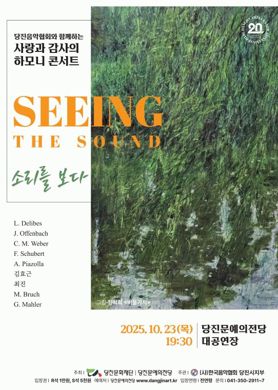(Àç)´çÁø¹®ÈÀç´Ü¡¤´çÁø¹®¿¹ÀÇÀü´çÀº ¿À´Â 10¿ù 23ÀÏ ¸ñ¿äÀÏ ¿ÀÈÄ 7½Ã 30ºÐ, ´çÁø¹®¿¹ÀÇÀü´ç ´ë°ø¿¬Àå¿¡¼ '´çÁøÀ½¾ÇÇùȸ¿Í ÇÔ²²ÇÏ´Â »ç¶û°ú °¨»çÀÇ Çϸð´Ï ÄܼƮ '¼Ò¸®¸¦ º¸´Ù(SEEING THE SOUND)''¸¦ °³ÃÖÇÑ´Ù.
