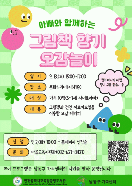 À̹ø ÇÁ·Î±×·¥Àº ÀÎõ³²µ¿±¸°¡Á·¼¾ÅÍ¿Í Çù·ÂÇØ ¿î¿µÇϸç, ¾Æºü¿Í Àڳడ ÇÔ²² ¿À°¨³îÀ̸¦ üÇèÇÏ¸ç °¡Á· °£ À¯´ë°¨À» °ÈÇϰí ÀÚ³àÀÇ Á¤¼ ¹ß´ÞÀ» µ½±â À§ÇØ ¸¶·ÃµÆ´Ù.