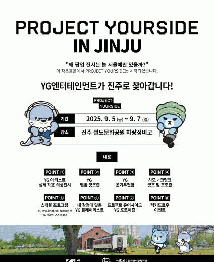 'PROJECT YOURSIDE'´Â ¼öµµ±Ç¿¡ ÁýÁßµÈ ÆË¾÷ Àü½Ã¸¦ Áö¿ªÀ¸·Î È®»ê½ÃÄÑ ¹®È Á¢±Ù¼ºÀ» ³ôÀ̰í, ¾Æµ¿¡¤Ã»¼Ò³âÀÇ ¹®È °ÝÂ÷¸¦ ÇØ¼ÒÇϱâ À§ÇØ ±âȹµÈ YGÀÇ ´ëÇ¥ »çȸ°øÇå »ç¾÷ÀÌ´Ù.