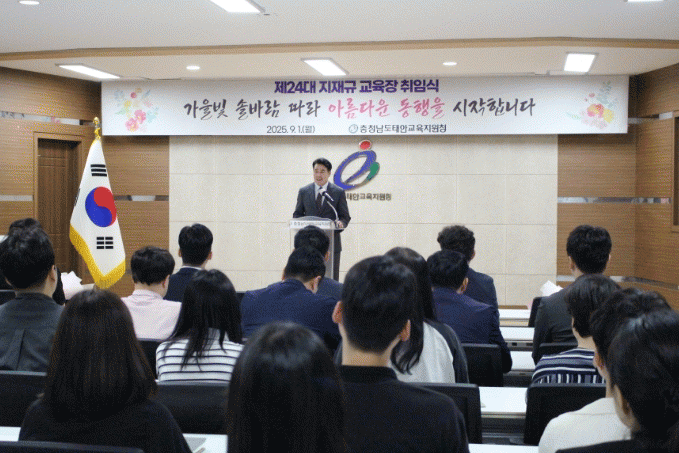 ÁöÀç±Ô ±³À°ÀåÀº ÃëÀӻ翡¼ ¡°±³À°Àº »ç¶ûÀÌÀÚ ±â´Ù¸²ÀÌ´Ù.¡±¶ó¸ç, ¡°¿ì¸® ¾ÆÀ̵éÀÇ ³»ÀÏÀ» À§ÇØ ²÷ÀÓ¾øÀÌ ³ë·ÂÇÏ¸ç ¼ÕÀ» ¸ÂÀâ°í °É¾î°¡´Â žȱ³À°Áö¿øÃ»ÀÌ µÇµµ·Ï ÇϰڴÙ.¡±°í ÀüÇß´Ù.