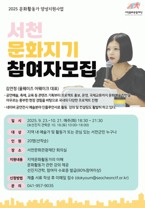 ƯÈ÷ À̹ø ±³À°°»ç´Â ¿Ã¿þÀÌÁî ¾î¿þÀÌÅ© ±è¿¬Á¤ ´ëÇ¥·Î °ø¿¬¿¹¼ú, ÃàÁ¦, ±³À° ÄÜÅÙÃ÷ ±âȹºÎÅÍ ÇÁ·ÎÁ§Æ® È«º¸¡¤¿î¿µ, ±¹Á¦±³·ù±îÁö Æø³ÐÀº ÇöÀå °æÇèÀ» Áö´Ñ Àü¹®°¡ÀÌÀÚ ³×À̹ö °ø¿¬¡¤Àü½Ã¡¤¿¹¼ú ºÐ¾ß ÀÎÇ÷ç¾ð¼·Îµµ Ȱµ¿Çϰí ÀÖ¾î, °ÀÇ ¹× ÄÁ¼³ÆÃÀ» ÅëÇØ Â÷¼¼´ë ¹®È±âȹÀÚ¿Í ¿¹¼úÀε鿡°Ô ½ÇÁúÀûÀÎ µµ¿òÀ» ÁÙ ¼ö ÀÖÀ»°ÍÀ¸·Î ±â´ëµÈ´Ù.
