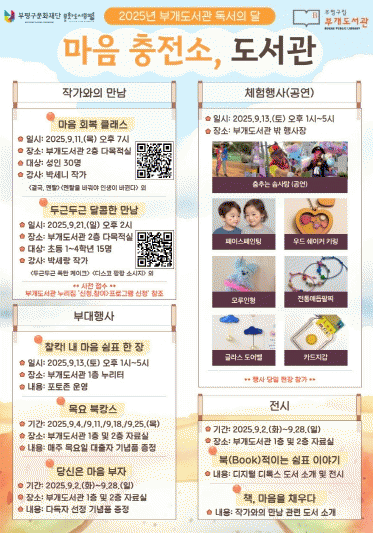 ºÎ°³µµ¼°üÀº ¸Å³â 9¿ù µ¶¼ÀÇ ´ÞÀ» ¸Â¾Æ Çà»ç¸¦ ÁøÇàÇϰí ÀÖÀ¸¸ç, ¿ÃÇØ Çà»ç´Â °¡À»À» ¸Â¾Æ Áö¿ª ÁÖ¹ÎÀÌ Ã¥°ú ¹®È ¼Ó¿¡¼ Áñ°Å¿î ½Ã°£À» ´©¸± ¼ö ÀÖµµ·Ï ¸¶·ÃµÆ´Ù.