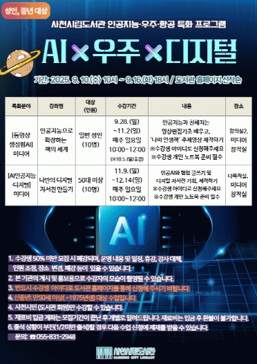 ¼ºÀΡ¤Áß³â ÇÁ·Î±×·¥Àº µ¿¿µ»ó »ý¼ºÇü AI¸¦ Ȱ¿ëÇÑ 'ÀΰøÁö´ÉÀ¸·Î È®ÀåÇϴ åÀÇ ¼¼°è', AI¿Í Çù¾÷ ±Û¾²±â¸¦ ÅëÇÑ '³ª¸¸ÀÇ µðÁöÅÐ ÀÚ¼Àü ¸¸µé±â' µî ÃÑ 2°³ °Á´Ù.