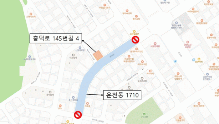 À̾î 9ÀÏ ¿ÀÀü 9½ÃºÎÅÍ 10ÀÏ ¿ÀÀü 1½Ã±îÁö, 10ÀÏ ¿ÀÈÄ 1½ÃºÎÅÍ 11ÀÏ ¿ÀÀü 5½Ã±îÁö´Â Èï´ö·Î 145¹ø±æ 4¿¡ À§Ä¡ÇÑ °Ç¹°À» Æ÷ÇÔÇØ ¿îõµ¿ 1710 ÀϺΠµµ·Î ±¸°£ÀÌ ÅëÁ¦µÈ´Ù.