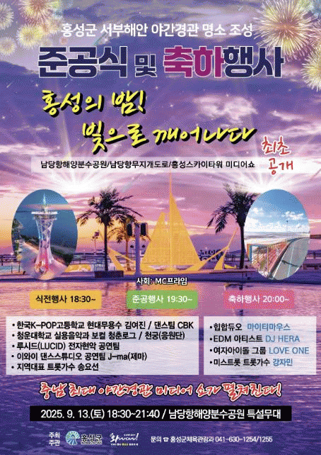 À̹ø¿¡ °ø°³µÇ´Â ¾ß°£°æ°ü ¹Ìµð¾î ¼î´Â È«¼ºÀÇ ·£µå¸¶Å©ÀÎ ¡®È«¼º½ºÄ«ÀÌŸ¿ö¡¯¿Í¡®³²´çÇ× ÇØ¾çºÐ¼ö°ø¿ø¡¯¡®³²´çÇ× ¹«Áö°³ µµ·Î¡¯¼¼ °÷¿¡¼ µ¿½Ã¿¡ ÆîÃÄÁö´Â ȯ»óÀûÀÎ ¾ß°£ °æ°ü Á¶¸í ¿¬ÃâÀÌ ÇÙ½ÉÀ̸ç, Ãæ³²±Ç ÃÖ´ë ±Ô¸ð·Î Á¶¼ºµÈ À̹ø ¾ß°£°æ°ü Á¶¸íÀº ÃÖ÷´Ü ¹Ìµð¾î ±â¼úÀ» Ȱ¿ëÇÏ¿© ¼ÇؾÈÀÇ ¾Æ¸§´Ù¿î ¹ã¹Ù´Ù¿Í ¾î¿ì·¯Áö´Â È·ÁÇÏ°í ¿ªµ¿ÀûÀÎ º¼°Å¸®¸¦ Á¦°øÇÒ ¿¹Á¤ÀÌ´Ù.