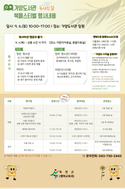 ÀÏ¹Ý ¹× û¼Ò³â¿¡°Ô´Â ÀüÀÚÃ¥ ¸®´õ±â, µ¶¼¸µ, Ã¥°¥ÇÇ µîÀÌ ¾î¸°ÀÌ¿¡°Ô´Â Ã¥Äí¼Ç, ¸Ó±×ÄÅ, ºÏ¿£µå, °£½Ä ²Ù·¯¹Ì µîÀÌ °æÇ°À¸·Î Á¦°øµÈ´Ù.
