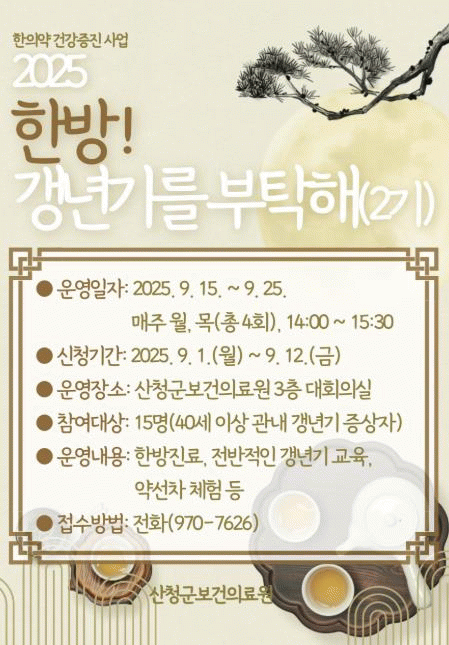 Áö¿ª ³» 40¼¼ ÀÌ»ó °»³â±â Áõ»óÀÚ¸¦ ´ë»óÀ¸·Î ÇÏ´Â À̹ø ÇÁ·Î±×·¥Àº ÇÑÀǾàÀ» ÅëÇØ °»³â±â¿¡ ´ëÇÑ ¿Ã¹Ù¸¥ Áö½ÄÀ» Àü´ÞÇϰí ÁֹΠ½º½º·Î°¡ ´Éµ¿ÀûÀ¸·Î °»³â±â¸¦ ±Øº¹Çϴµ¥ ±â¿©Çϱâ À§ÇØ ¸¶·ÃµÆ´Ù.