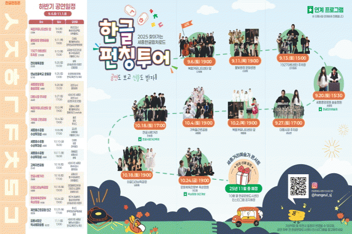 À̹ø ÇϹݱ⿡´Â ±âÁ¸ °ø¿¬¿¡ ´õÇØ ½Ã¹Î Âü¿©Çü ÇÁ·Î±×·¥ ¡®ÇÑ±ÛÆÝĪÅõ¾î¡¯¸¦ ¿î¿µÇÑ´Ù. °ø¿¬ ÇöÀå¿¡¼ ¸®Çø´À» ¼ö·ÉÇÑ µÚ ÁöÁ¤µÈ 10°÷ÀÇ °ø¿¬ ÇöÀåÀ» ¹æ¹®ÇÏ¿© ´ã´çÀÚ¿¡°Ô ÇѱÛÀÚÀ½ ÀÎÁõÀ» ¹Þ¾Æ 3°³ ÀÌ»ó ¸ðÀ¸¸é, 11¿ù Áß ¿¸®´Â ¡®¼¼Á¾°Å¸®¿¹¼ú°¡ ÄܼƮ¡¯¿¡¼ ±â³äǰÀ» ¹ÞÀ» ¼ö ÀÖ´Ù.