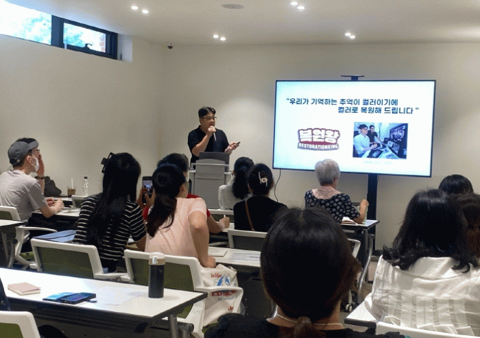 Àå ÀÛ°¡´Â À̹ø °¿¬¿¡¼ Èæ¹é»çÁøÀ» Ä÷¯·Î ÀÛ¾÷ÇÏ´Â ÀÌÀ¯¿Í °úÁ¤À» ½Ã¹Îµé°ú »ó¼¼È÷ °øÀ¯Çϰí, º¹¿øÀº ´Ü¼øÇÑ ±â¼úÀÌ ¾Æ´Ñ °ú°Å¿Í ÇöÀç, ¹Ì·¡¸¦ À̾îÁÖ´Â ¼±¼øÈ¯ÀÓÀ» °Á¶Çß´Ù. ÀÛ°¡´Â ¶Ç »çÁø ¼±ÅÃÀÇ ±âÁذú ¿øº» »çÁøÀ» ±¸ÇÏ´Â ¹æ¹ý, º¹¿øµÈ »çÁøÀÇ È°¿ë ¹æ½Ä µîµµ ¼Ò°³ÇØ Âü¼®ÀÚµéÀÇ ÀÌÇØ¸¦ µµ¿Ô´Ù.