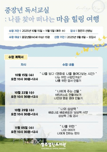 À̹ø ÇÁ·Î±×·¥Àº ÀÏ»ó¿¡ ÁöÄ£ ÁßÀå³âÃþ¿¡°Ô ÀÚ½ÅÀÇ »î°ú °¡Ä¡°üÀ» µÇµ¹¾Æº¸°í »õ·Î¿î Ȱ·ÂÀ» ºÒ¾î³Ö´Â ±âȸ¸¦ Á¦°øÇÒ ¿¹Á¤ÀÌ´Ù. ´Ü¼øÇÑ µ¶¼¸¦ ³Ñ¾î ±íÀÌ ÀÖ´Â Åä·Ð°ú ´Ù¾çÇÑ Ã¼ÇèÀ» ÅëÇØ Àι®ÇÐÀû ¼Ò¾ç°ú »îÀÇ ¸ñÀûÀǽÄÀ» Ű¿ì´Â µ¥ ÁßÁ¡À» µÐ´Ù.