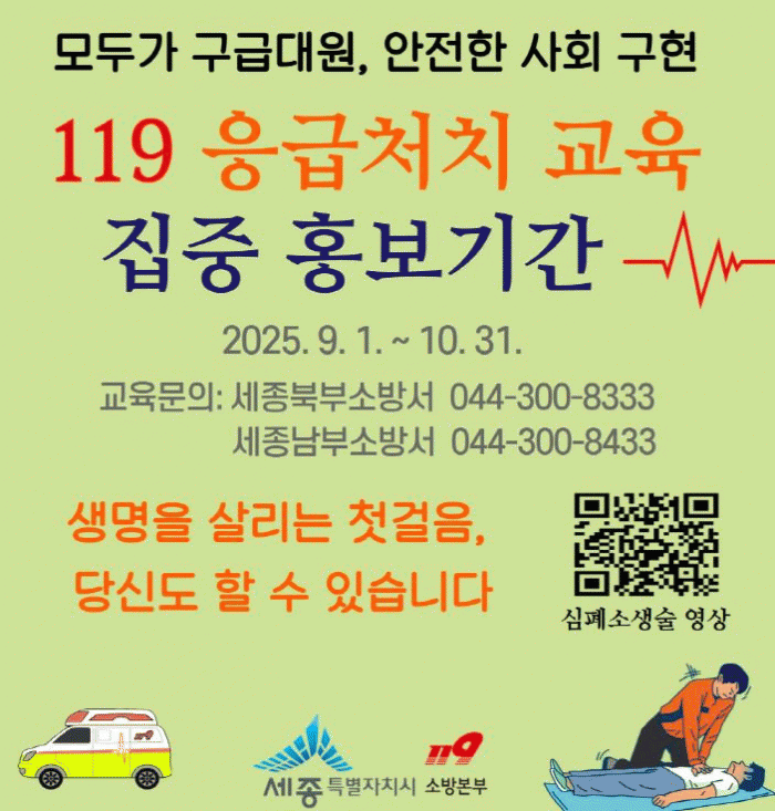 ¼¼Á¾¼Ò¹æº»ºÎ´Â ÇØ´ç ±â°£ µ¿¾È ½ÉÆó¼Ò»ý¼ú ¹× ÀÚµ¿½ÉÀåÃæ°Ý±â(AED) »ç¿ë¹ýÀ» Àû±Ø È«º¸Çϰí, ½Ã¹Î Âü¿© Ä·ÆäÀÎ µîÀ» ½Ç½ÃÇÒ ¹æÄ§ÀÌ´Ù.